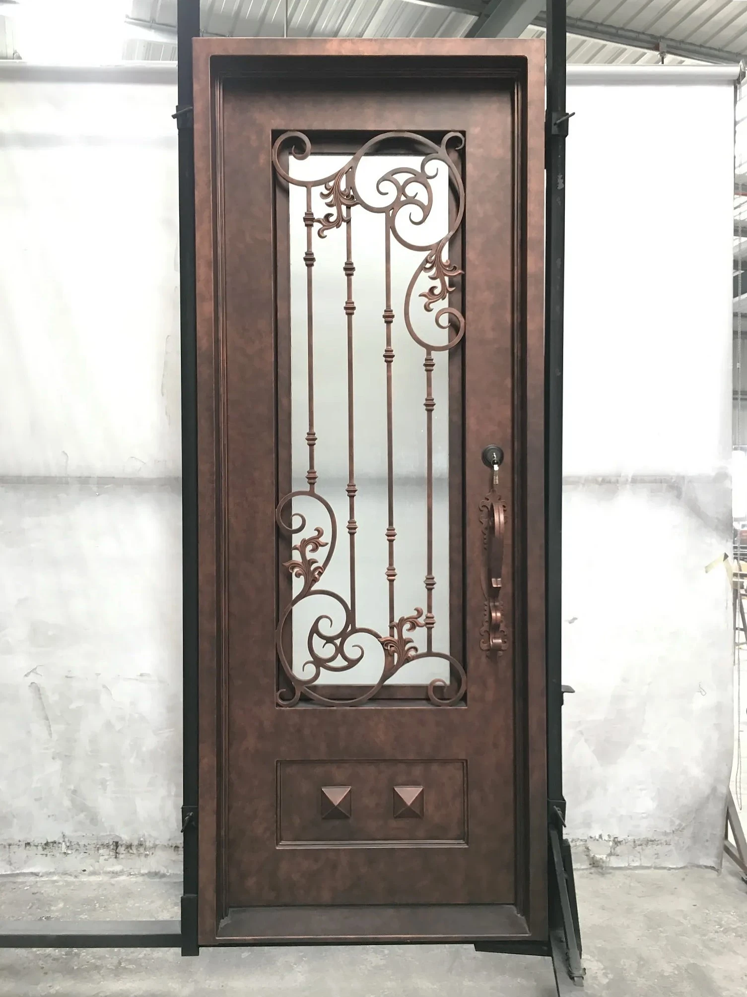 Here at Apex we exclusively use 12-gauge wrought iron for all of our doors and jambs. This is the thickest in the industry (.1046″ and weighing 4.27lbs per square foot). 12-gauge wrought iron is 40% heavier and thicker than 14-gauge iron and 75% thicker and heavier than 16-gauge. Because of this, a 12-gauge door is much stronger and less susceptible to damage or the effects of weather.