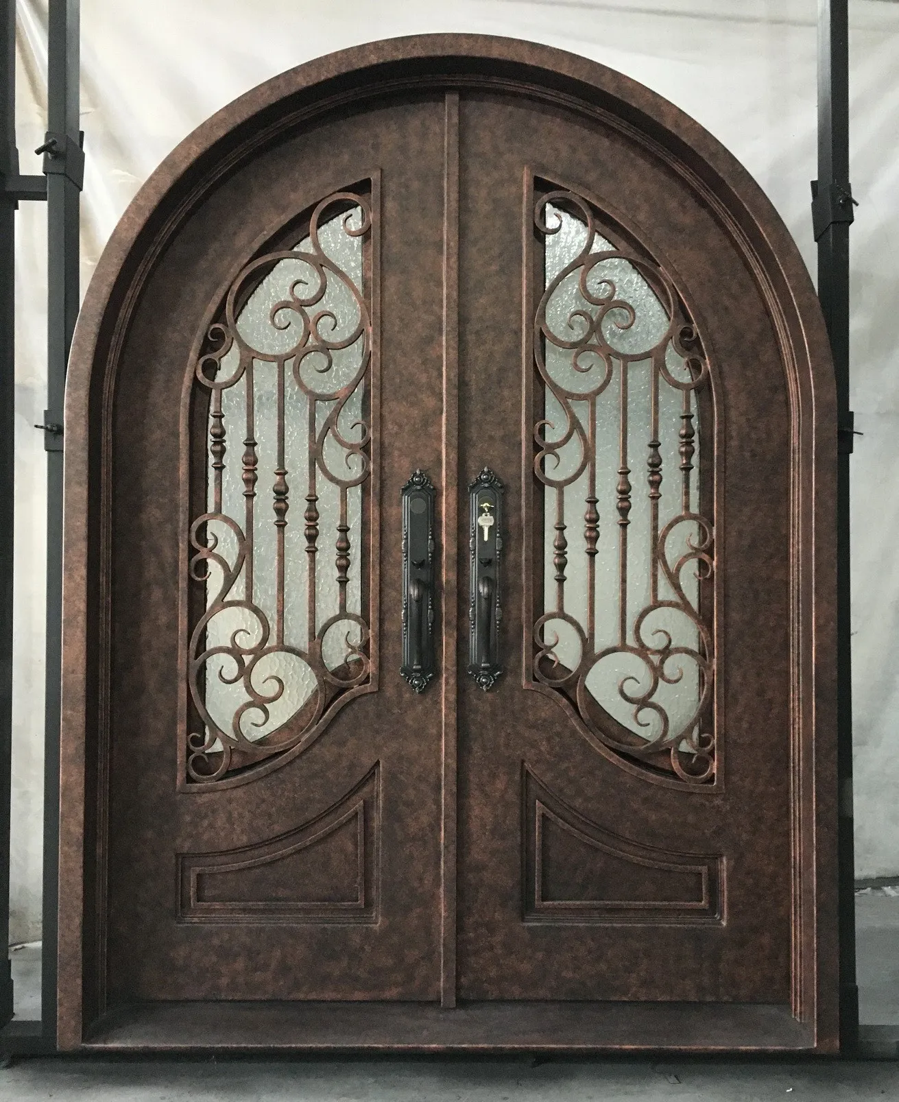 Here at Apex we exclusively use 12-gauge wrought iron for all of our doors and jambs. This is the thickest in the industry (.1046″ and weighing 4.27lbs per square foot). 12-gauge wrought iron is 40% heavier and thicker than 14-gauge iron and 75% thicker and heavier than 16-gauge. Because of this, a 12-gauge door is much stronger and less susceptible to damage or the effects of weather.